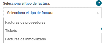 2. Seleccionamos el tipo de documento (factura de proveedores, factura a clientes, tickets o Facturas de Inmovilizado) .