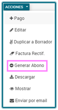 El abono generará una factura en negativo por el total y en la misma serie de la factura que se está abonando.