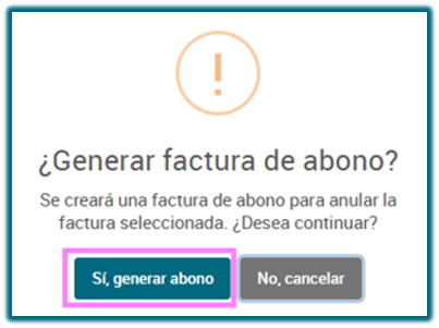 Nos aparecerá una emergente que requiere confirmación, pulsamos en Sí, generar abono.