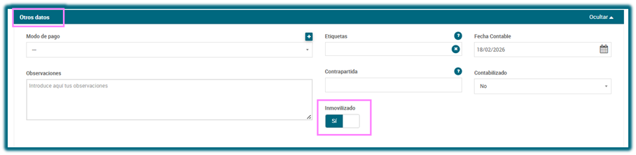 Un botón de “Inmovilizado” dentro de la ficha de la factura de venta.
