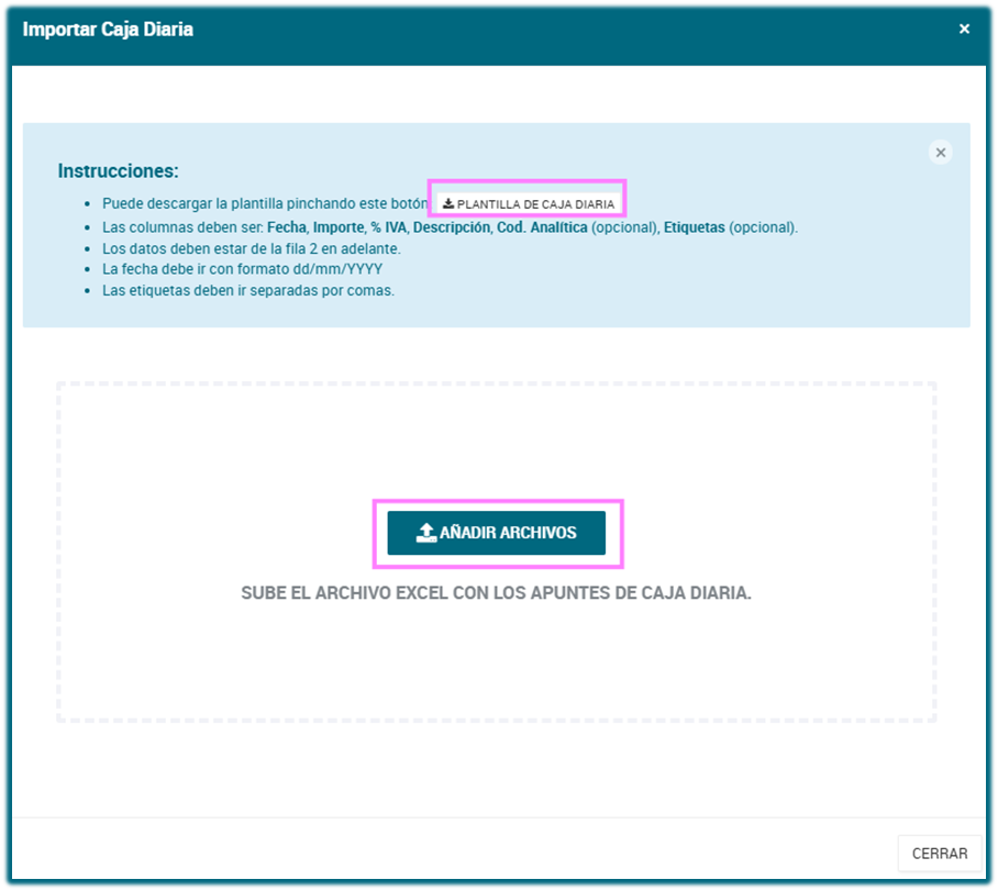Desde ahora, ya está disponible el Importador de Caja Diaria, que permite cargar los ingresos mediante archivo Excel, evitando la introducción manual de los datos.