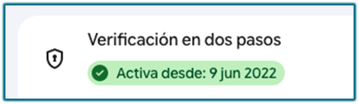 Debe estar activada la verificación en dos pasos, si no la tenemos activada, lo hacemos