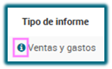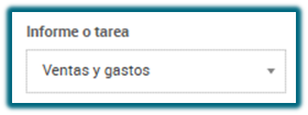 En el campo Informe o Tarea, seleccionar Ventas y gastos