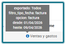 Si nos posicionamos sobre el icono ℹ️ (información) del informe, podremos consultar los filtros utilizados en su generación.