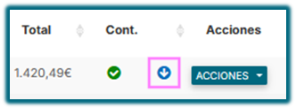 Una vez encuentres el registro, haz clic en la flecha azul y se descargará automáticamente el fichero en formato XML.