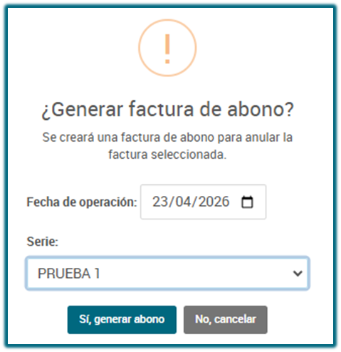 Puedes adaptar la generación del abono a tu operativa (por ejemplo, series específicas de abonos)
